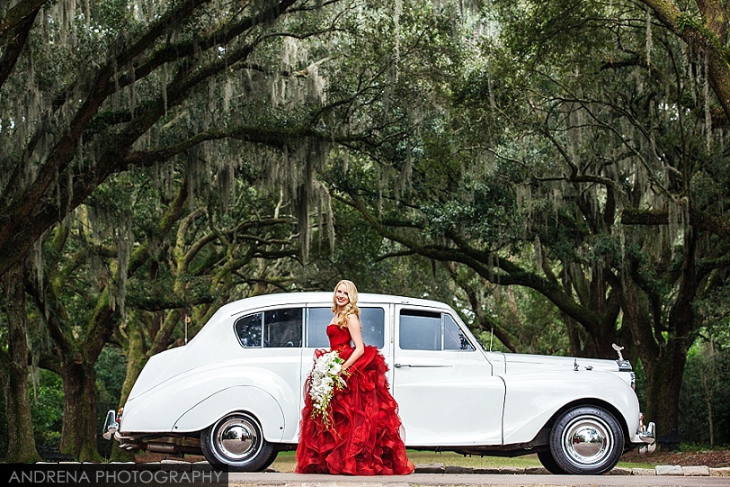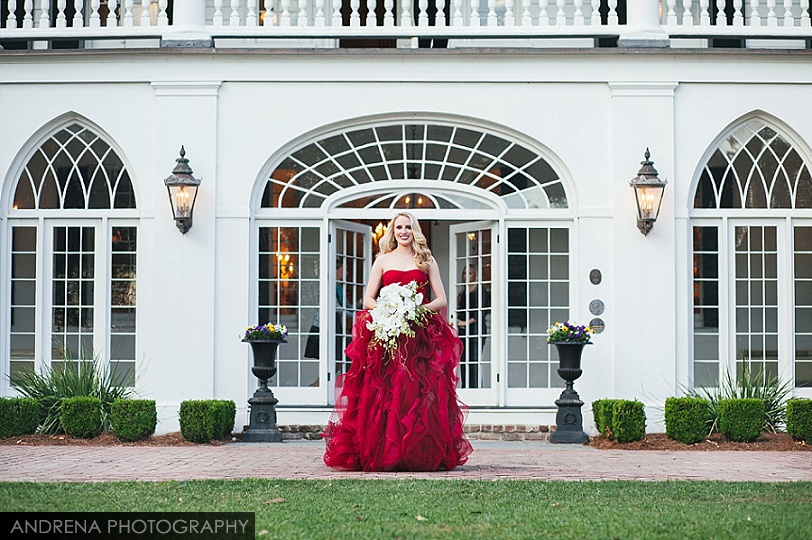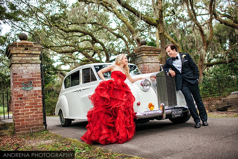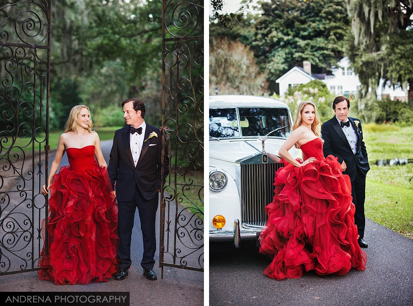 When you pair a red Vera Wang wedding dress with old Southern charm on a historic plantation in Charleston, South Carolina, you know that your wedding photographer is going to end up creating a beautiful collection of images. The wedding of Sarah and Keith took place at the stunning Lowndes Grove Plantation in Charleston, and I was delighted when they chose me to photograph their beautiful wedding. Coordination was provided with Ellen Robinson at WED, with florals by Blossoms Events and lighting by Technical Event Company (TEC). I loved shooting a day-after session with this couple, and particularly loved seeing the red Vera Wang wedding dress positioned next to a “Caution Alligators” sign along the edges of a swamp. We don’t have many alligators or swamps here in Southern California, so I just love the resulting image. A huge thank you to Sarah and Keith for including us in their beautiful wedding. With second shooting by Yoshi Morimoto and third camera by Scott Hopkins at Hopkins Studios out of Savannah, who drove up especially to contribute his talents to this lovely wedding.