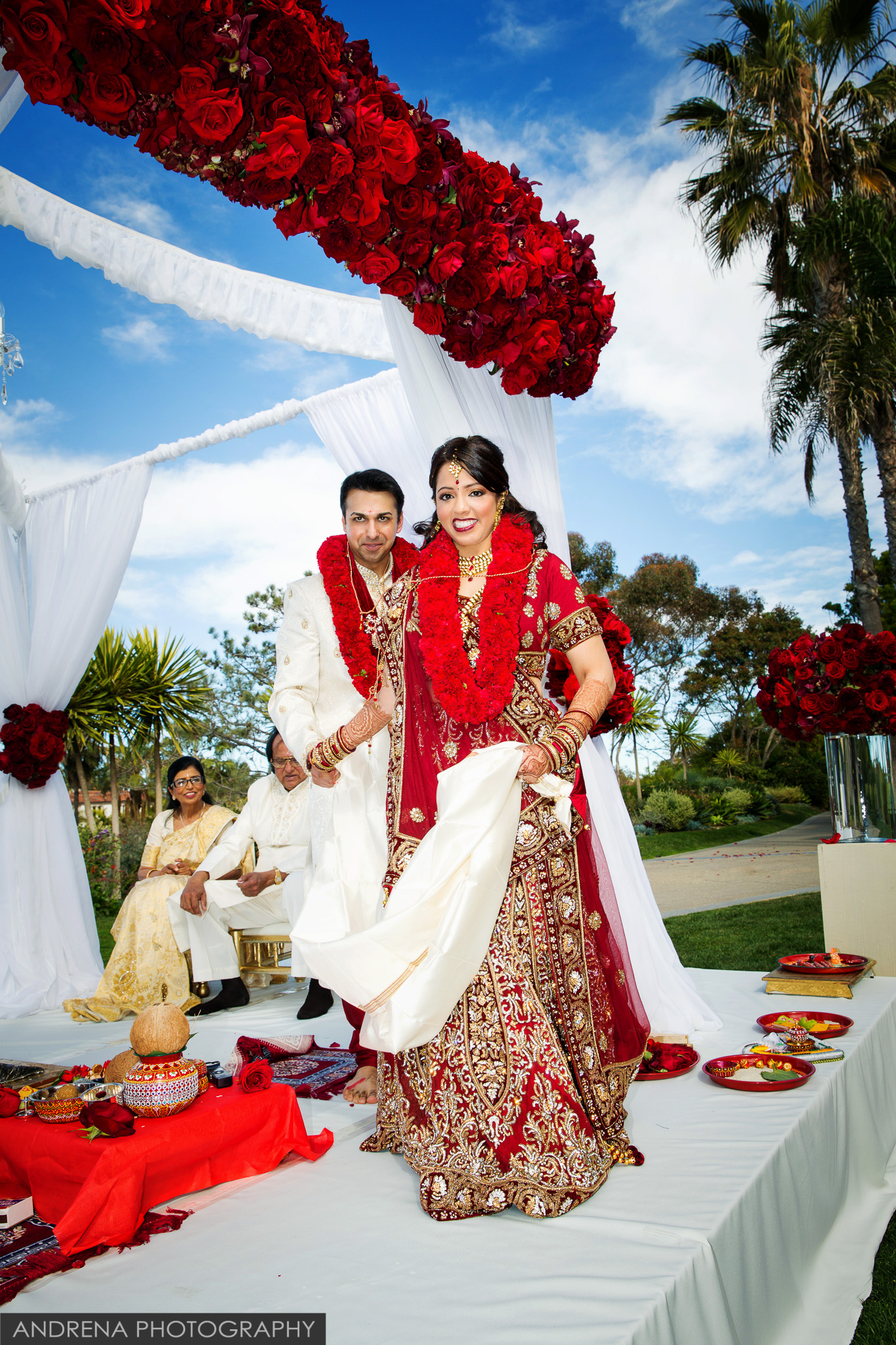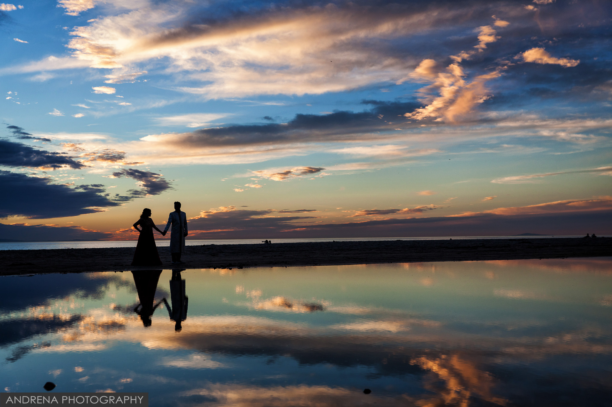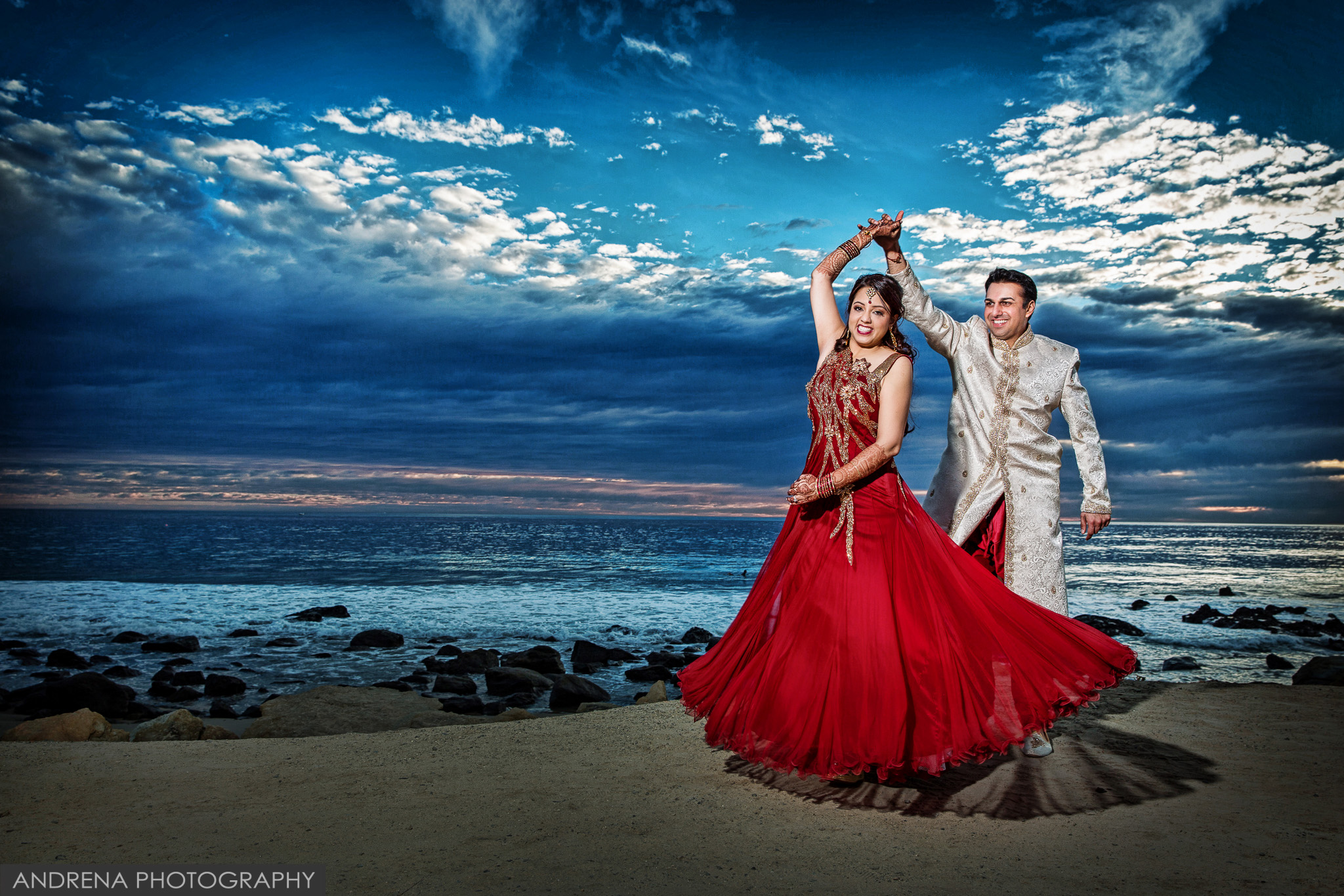 I adore working at the beautiful Ritz-Carlton Laguna Niguel in Dana Point, but shooting this winter wedding was especially wonderful, as I’d photographed the groom’s sister’s weddings many years ago. One of the things that struck me about this sweet couple is how attentive the groom was to his bride at their engagement shoot. He was kind of like John Cusack in Say Anything, kicking glass out of the way for Ione Skye to walk around. His focus was completely on her happiness and comfort, and I truly left feeling that these two were meant for one another. This couple chose to have a winter wedding on the Pacific Promenade Lawn with a luncheon reception following in the Pacific Promenade Ballroom. This meant we had time to get down to the water just before sunset, which was awesome, especially since the storm the night before had created truly magnificent clouds in the sky. Using off-camera lighting, I had the bride spin around and around until she almost fell over from being dizzy. The end result was one of their favorite images from their Ritz Laguna wedding. Coordinated by the wonderful Nutan Shah at Elegant Events by Nutan, with florals by Nisie’s Enchanted Florist.