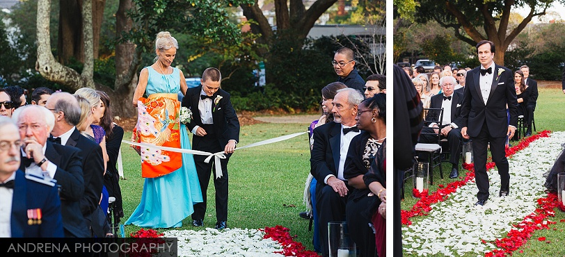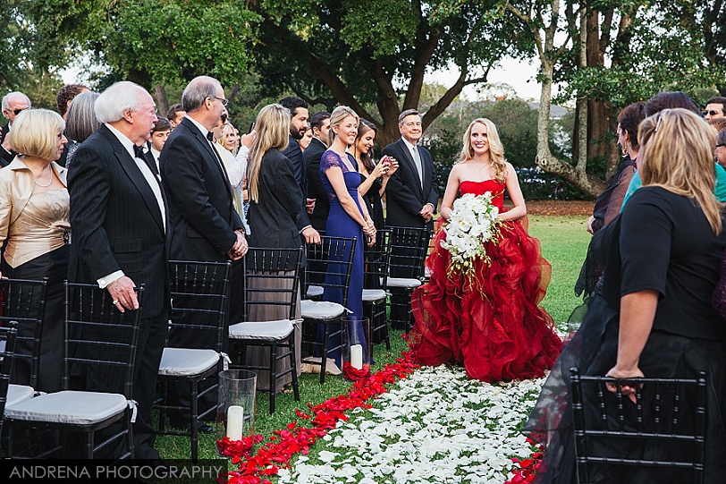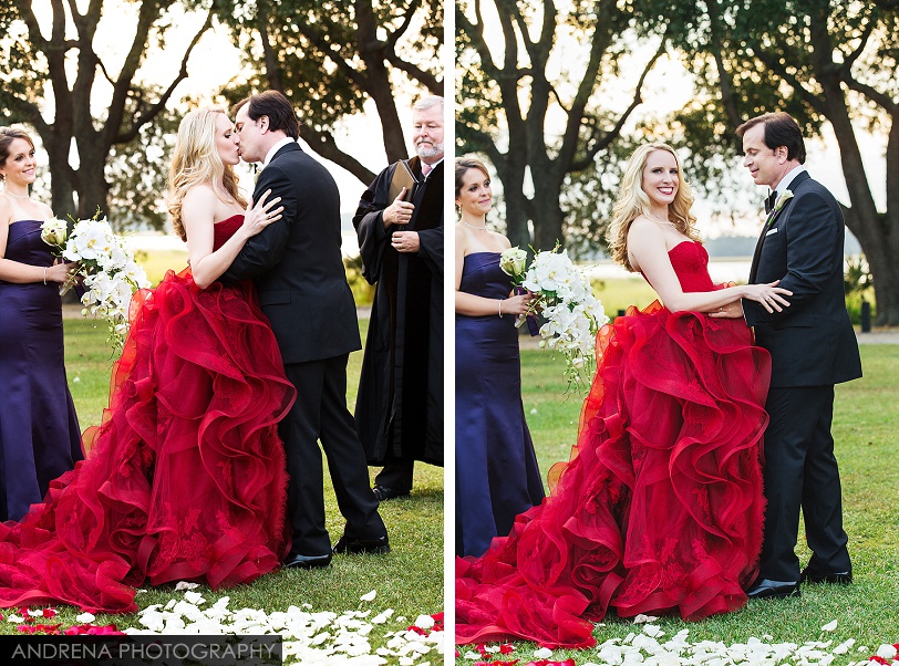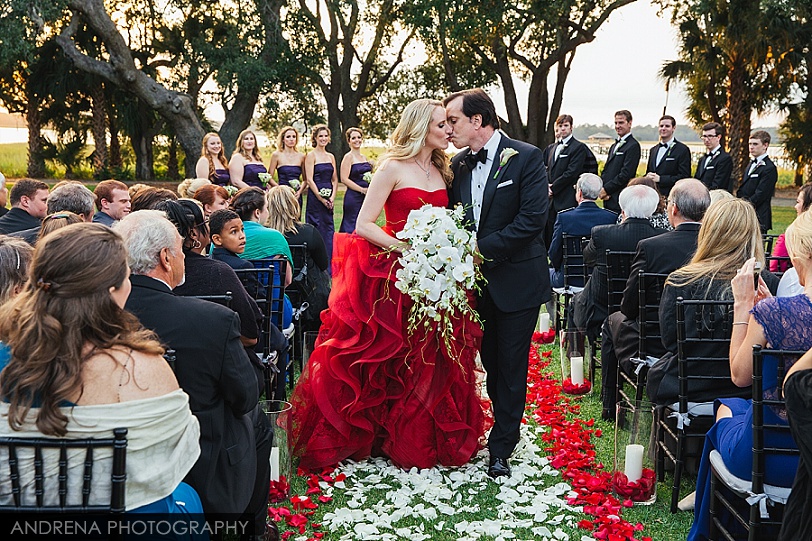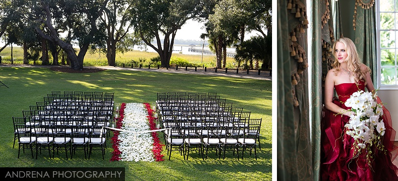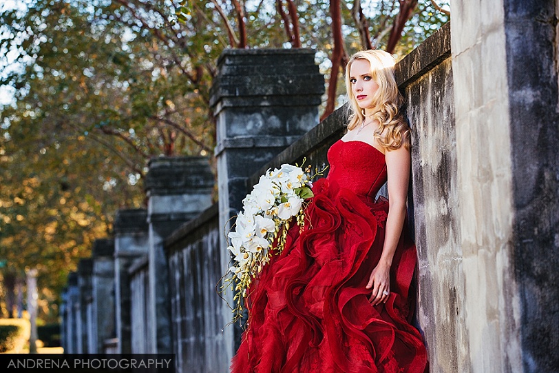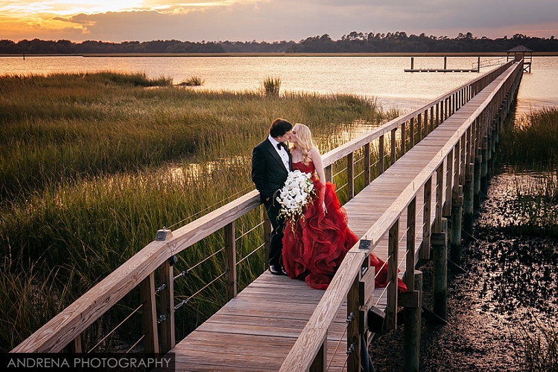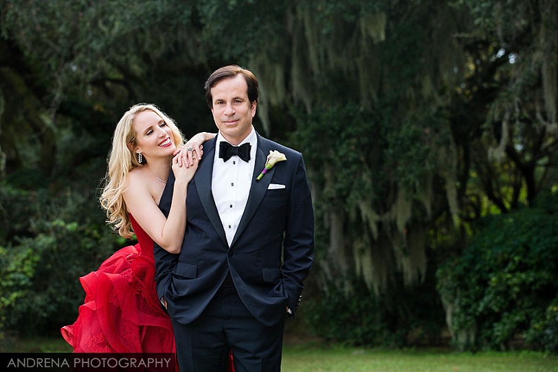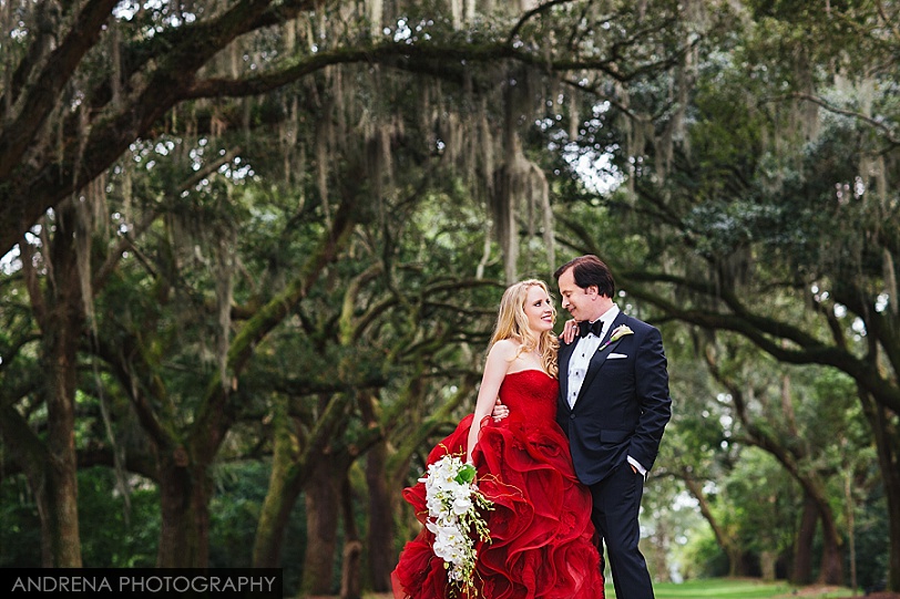 When you pair a red Vera Wang wedding dress with old Southern charm on a historic plantation in Charleston, South Carolina, you know that your wedding photographer is going to end up creating a beautiful collection of images. The wedding of Sarah and Keith took place at the stunning Lowndes Grove Plantation in Charleston, and I was delighted when they chose me to photograph their beautiful wedding. Coordination was provided with Ellen Robinson at WED, with florals by Blossoms Events and lighting by Technical Event Company (TEC). I loved shooting a day-after session with this couple, and particularly loved seeing the red Vera Wang wedding dress positioned next to a “Caution Alligators” sign along the edges of a swamp. We don’t have many alligators or swamps here in Southern California, so I just love the resulting image. A huge thank you to Sarah and Keith for including us in their beautiful wedding. With second shooting by Yoshi Morimoto and third camera by Scott Hopkins at Hopkins Studios out of Savannah, who drove up especially to contribute his talents to this lovely wedding.