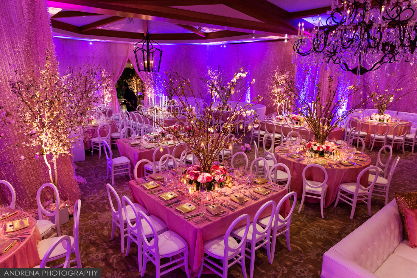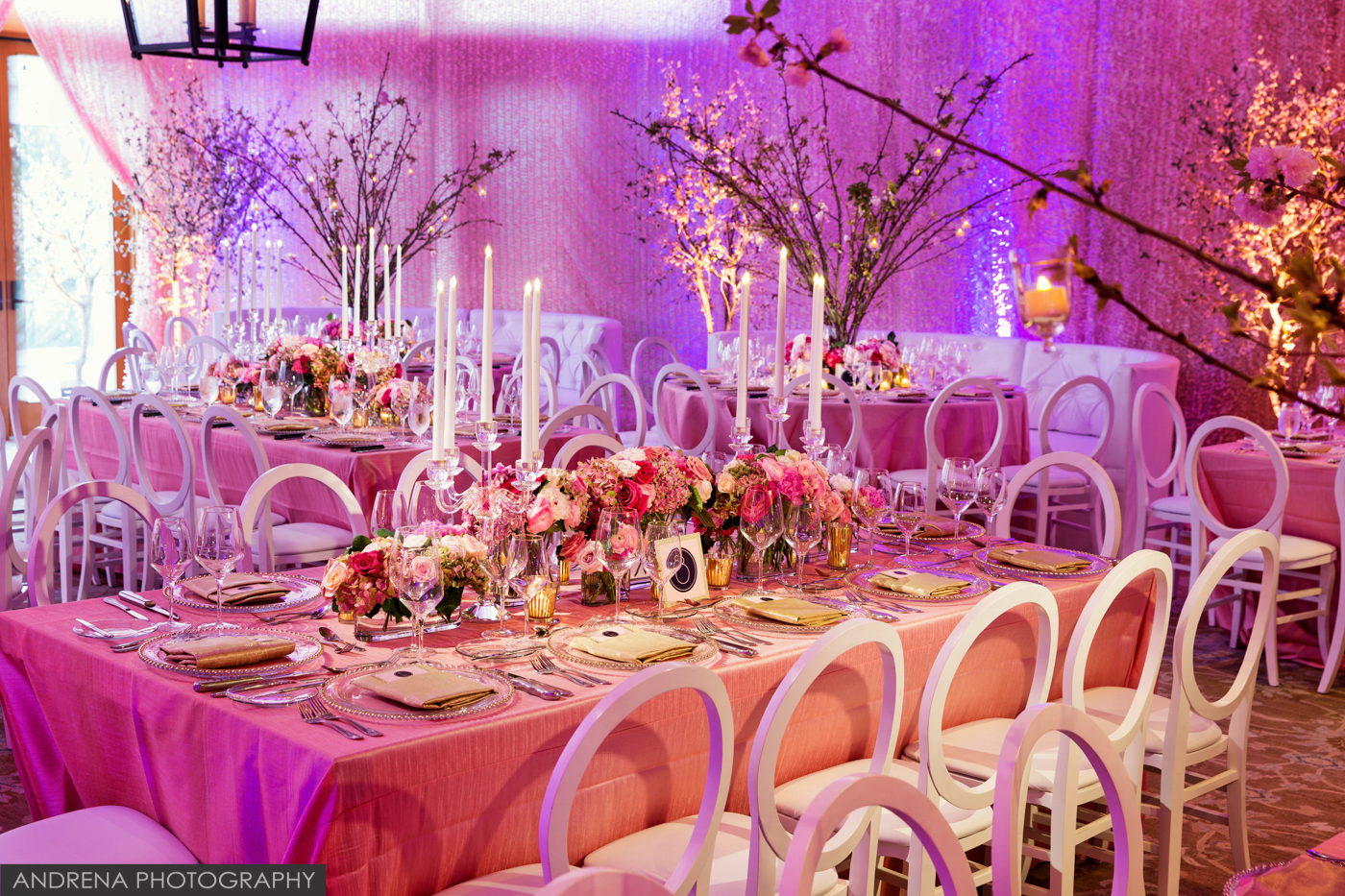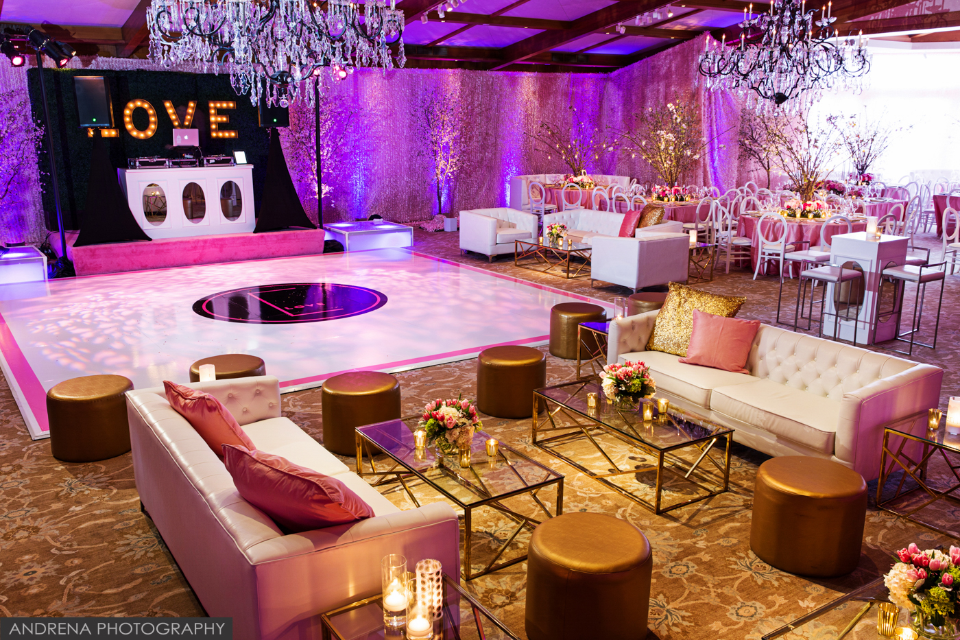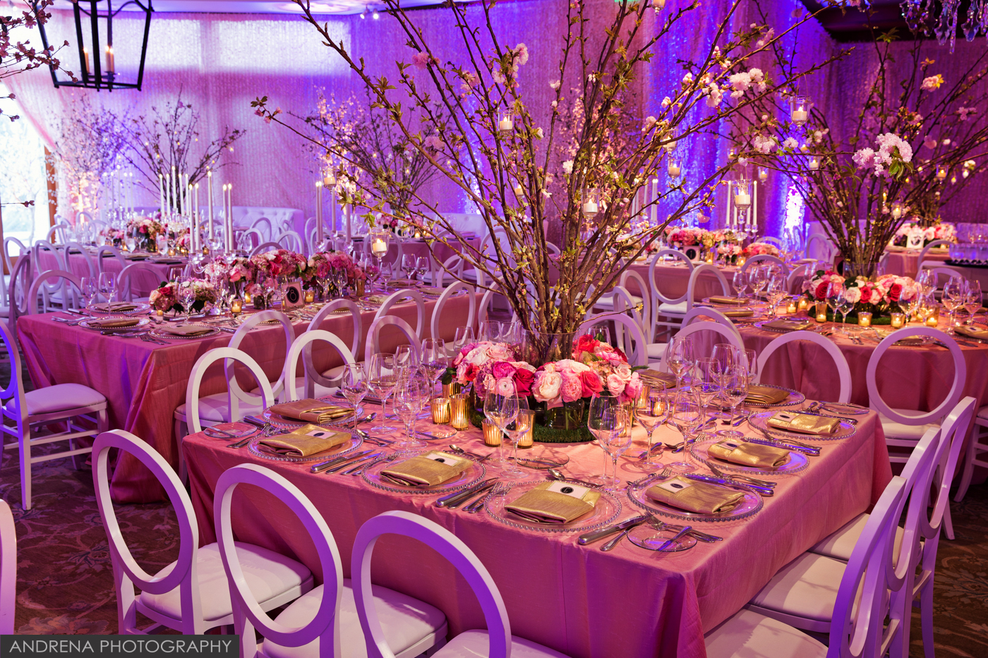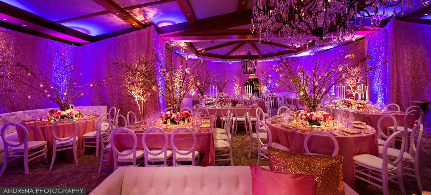 This beautiful bat mitzvah took place at the stunning Hillcrest Country Club, which Los Angeles event, bat mitzvah or bar mitzvah photographers adore working at. Coordinated by Debra Parr and the team at Amazing Grace Design, the ballroom was draped in blushes and pinks, then highlighted with beautiful cherry blossom trees and tabletop florals by Modern Floristry. If you’d like to engage these talented vendors for your next event, their web sites can be found at http://www.modernfloristry.com , http://www.amazinggracedesign.com and http://www.designer8.com